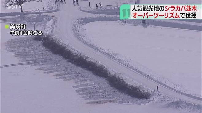 20日、札幌テレビの先週の映像によると、美瑛町の住民はオーバーツーリズムの問題や白樺の並木の陰のせいで農作物が育たないなどの理由でパッチワークロードの白樺の伐採を決めた。
